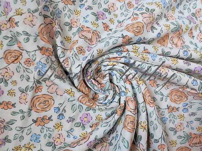 100% bavlněná mušelínová látka kytičky, gázovina – mušelín – vzorované látky – metráž