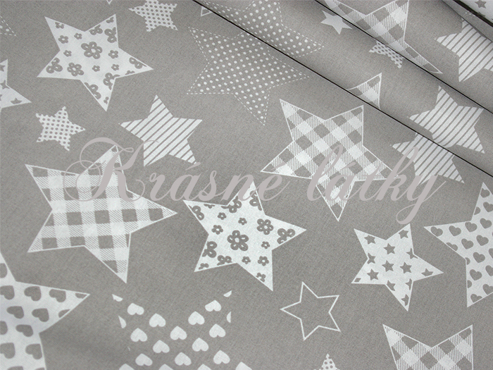 160x128cm II. jakost Hvězdy bílé-šedý podklad, hvězdičky 100% bavlna š.160cm 140gr/m2patchwork