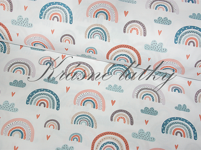 - Bavlněná látka, plátno - Duha, mraky, atest pro děti do tří let, látky metráž