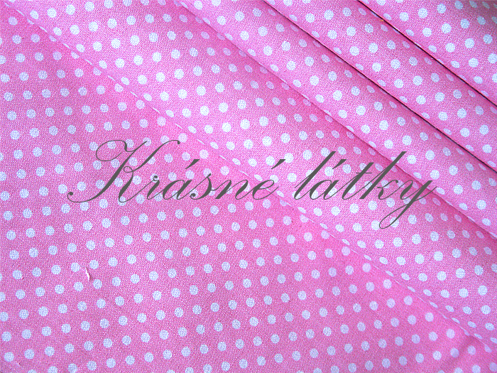 Bílé puntíky 4 mm světle růžový podklad - 100% bavlna, š. 160 cm, 130 g/m2Skladem99 Kč/ m