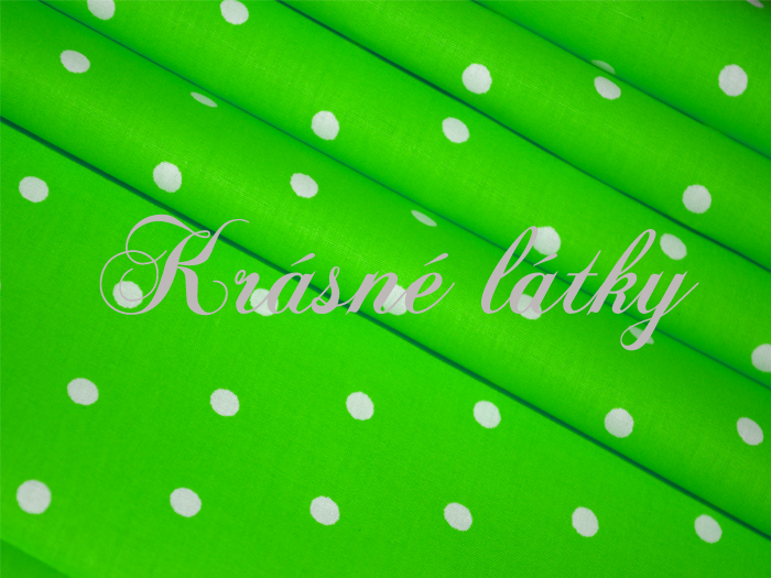 Bílé puntíky 7mm /zelená š.240 cm, 100% bavlnaSkladem165 Kč/ m