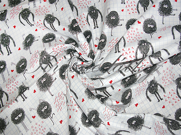 Krásné hladké bavlněné plátno s motivem Bubáci z komína - sněhově bílý podklad
