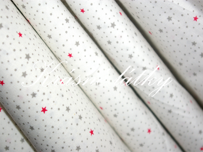 - Červené hvězdy š. 160 cm, drobný vzor, bílý podklad,