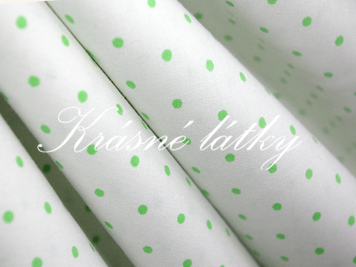 Drobné zelené puntíky 3mm š.240cm - bílý podklad, 100% bavlnaNení skladem165 Kč/ m