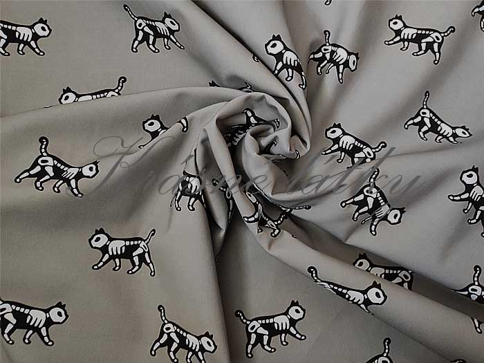 Halloween kostlivec kočka - 100 % bavlna, š. 160 cm, 150 g/m2, šedý podklad