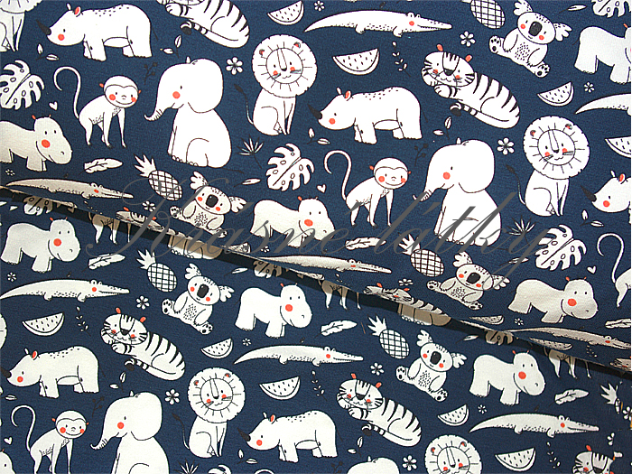 Hroch, krokodýl, lev, tygr, slon - 95 % bavlna, elastan 5 %, š. 160 cm, 170 g/m2