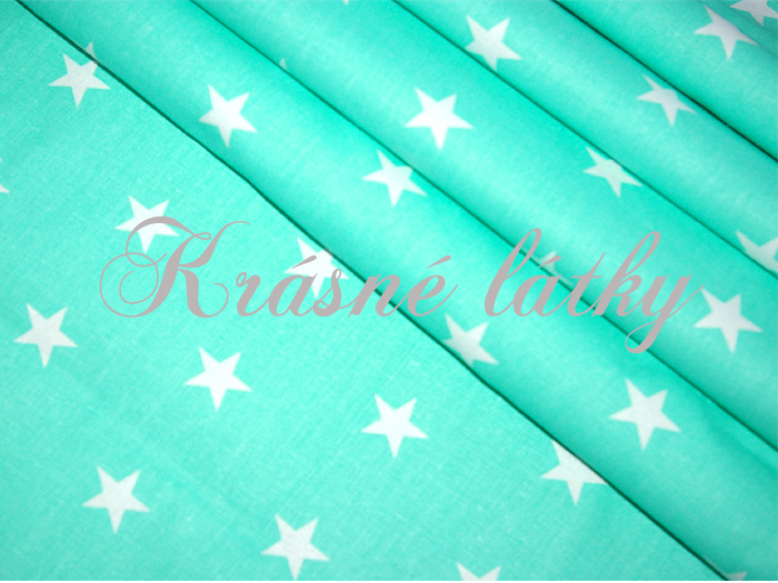Metráž dekorační látka - hladká bavlna - Hvězdy na mint podkladu