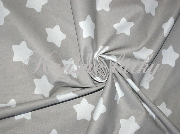 - Hvězdy bílé na šedém podkladu - 100% bavlna, š. 160 cm, 140 g/m2