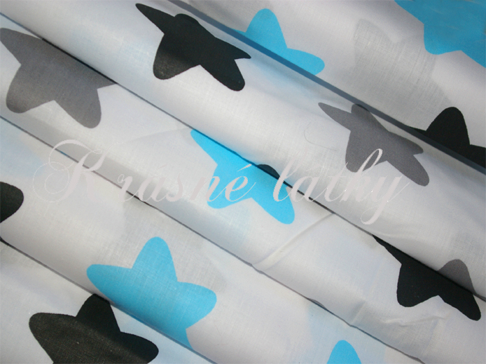 - Hvězdy trojbarevné modré šedé š.160cm 100%bavlna 130gr m2,hladké příjmné plátno