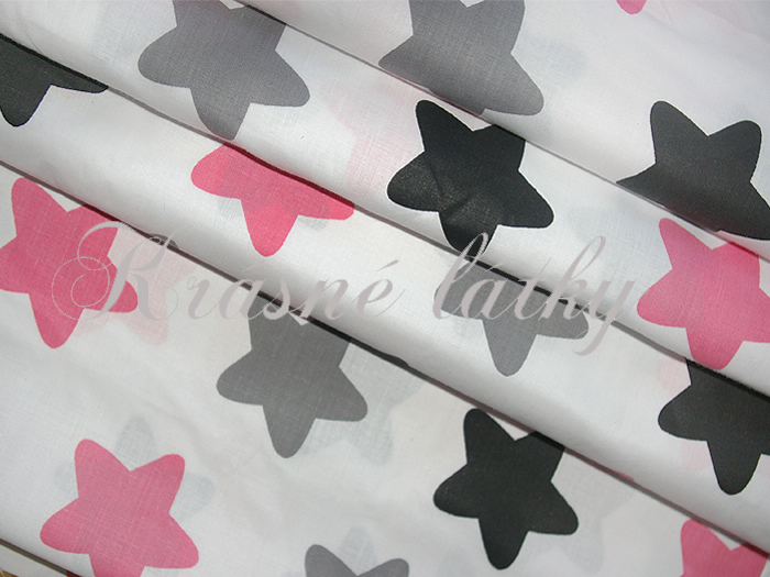 Hvězdy trojbarevné růžové šedé š.160cm 100%bavlna 130gr m2,hladké příjmné plátno
