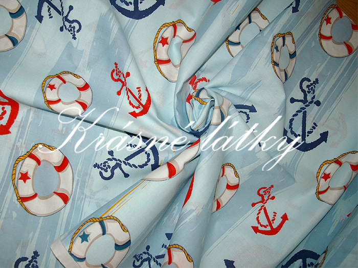 Krásná látka s kruhy a kotvami.