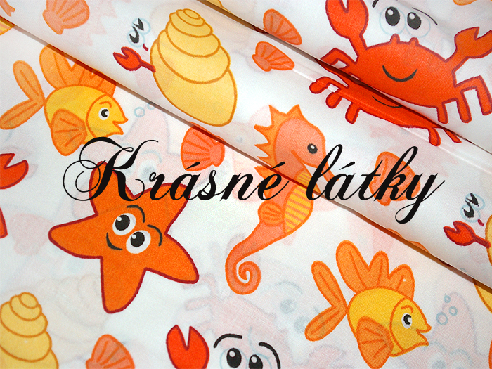 - Krab, hvězdice, mušle - 100% bavlna, š. 160 cm, 140 g/m2