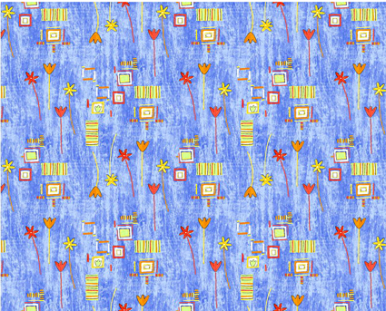 - Květiny 14 modrá - bavlna, polyester