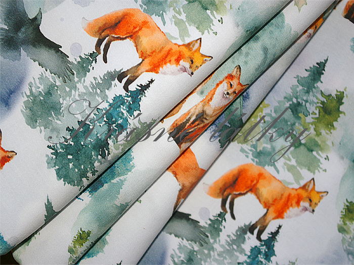 Bavlněná látka vyšší gramáže - Lišky, orel