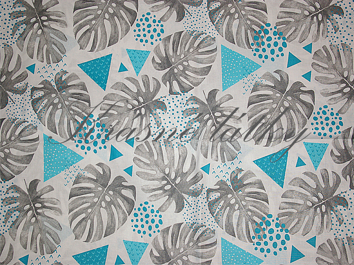 - Listy geo tyrkys, bavlněná látka š. 160 cm, plátno v metráži