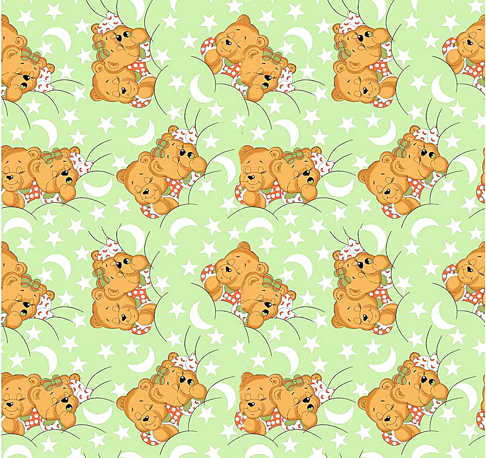 Medvídci zelená - flanel