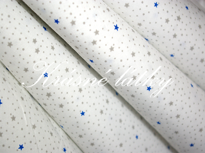 - Modré hvězdy š. 160 cm, drobný vzor, bílý podklad,