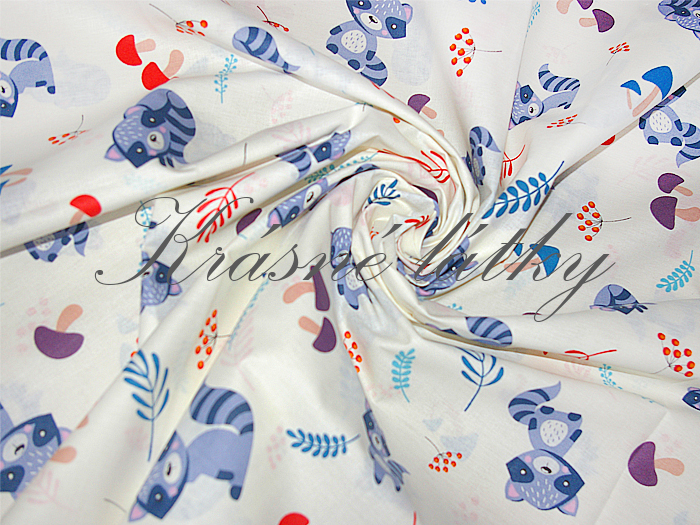 Krásné hladké bavlněné plátno s motivem Mývala - krémový podklad