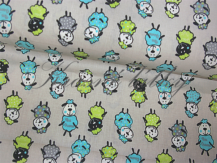- Ovečky na šedém pozadí - 100% bavlna, š. 160 cm, 135 g/m2