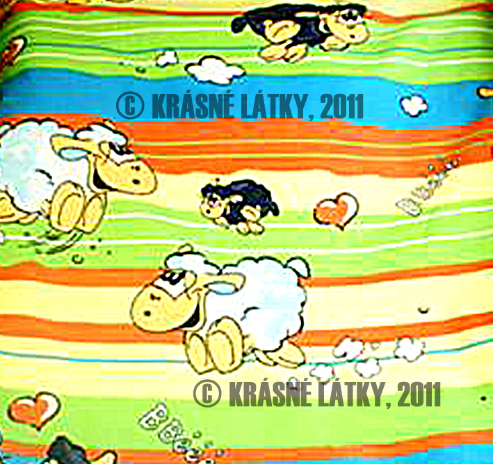 Krásná dětsá látka s ovečkami na dětské povlečení nebo dětské závěsy. Zelená barva látky je příjemná na oči - je v hezký odstínech. Tuto dětskou látku nabízíme i v dalších barevných variantách. Látka ovečka je vhodná na veškerý bytový textil.
