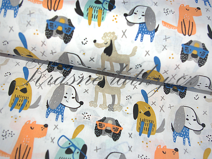 Pejskové na bílém podkladu - 100% bavlněné plátno, š. 160 cm, 130 g/m2