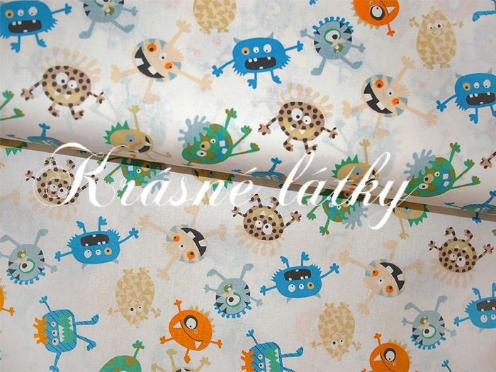 Látka příšerky - 100% bavlna v šířce 160 cm. Látku můžete použít na bytový textil. Metráž doporučujeme kombinovat s dalšími látkami například s látkou oči, která je ze stejné kolkece látek.