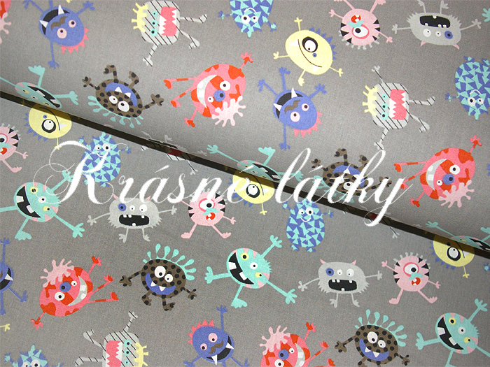 Příšerky na šedém podkladu - 140 cm, 100% bavlnaNení skladem159 Kč/ m