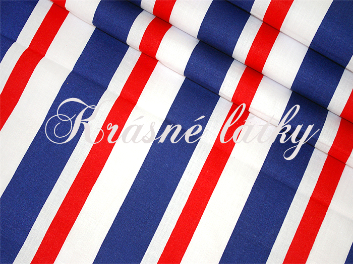 Pruhy červený modrý bílý - 100% bavlna, š. 160 cm, 130 g/m2
