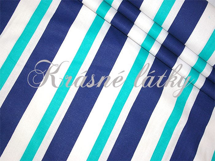Pruhy modrý tyrkys modrý bílý - 100% bavlna, š. 160cm, 130 g/m2