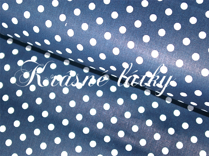 Puntík 7mm, 100% bavlna, 135g/m2, plátno tmavě modrý podklad