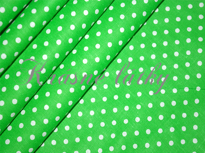 - Puntíky 5mm - zeleny podklad š. 150cm, 100% bavlna š. 150cm