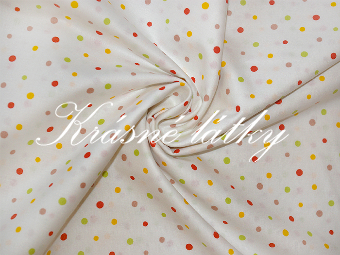 Krásná látka s puntíky, ze 100% bavlny, v šíři 240cm
