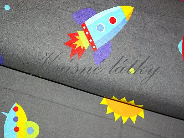 Raketa, bavlněná látka - metráž š. 160 cm, gramáž 135 g/m2, šedý podkladNení skladem130 Kč/ m