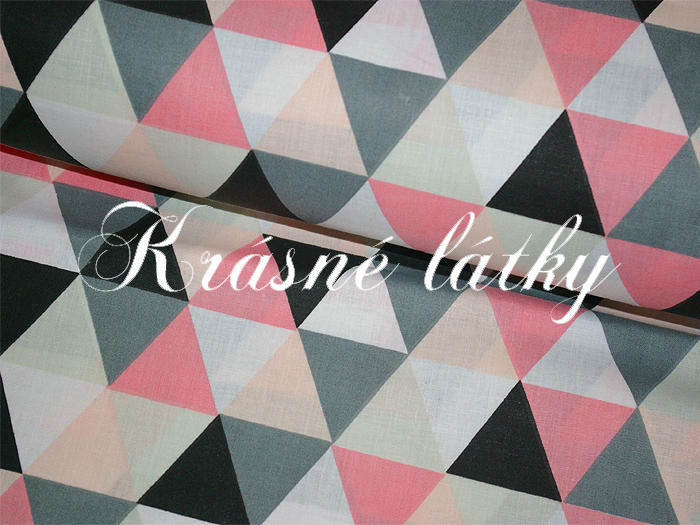 - Růžové trojúhelniky geo růžovo šedé, bavlněná látka v šíři 160cm, 120g/m2