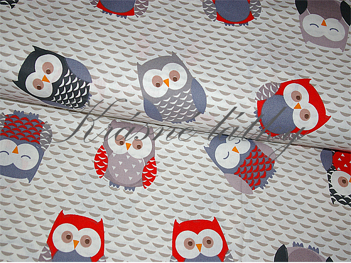- Šedé sovy 100% bavlna š. 240cm krásná kvalita,jemné na dotek
