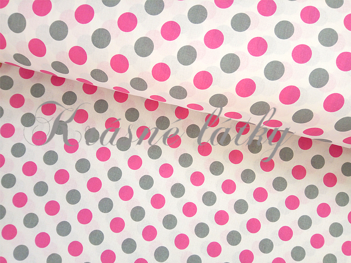 Šedo růžové puntíky 3cm veliké š. 160cmNení skladem120 Kč/ m