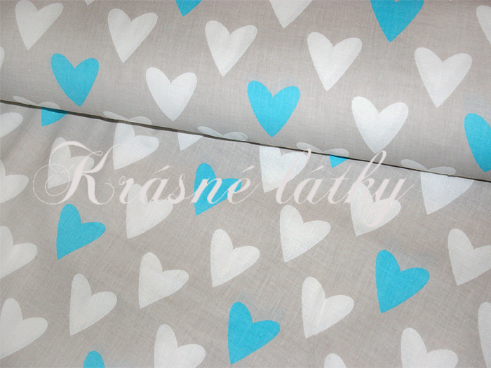 Srdíčka š. 160cm 100% bavlna tyrkysové provedení, šedý podklad
