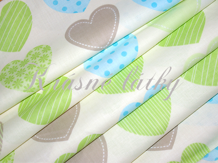 Srdíčka zelené provedení - 100% bavlna š. 160cm 125gr m2