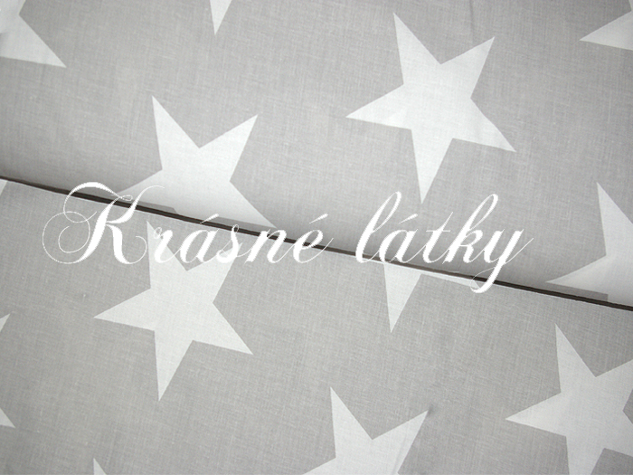 - Velké 12cm hvězdy bílé na šedé - 100% bavlna, š. 160 cm bavlna, 130 g/m2