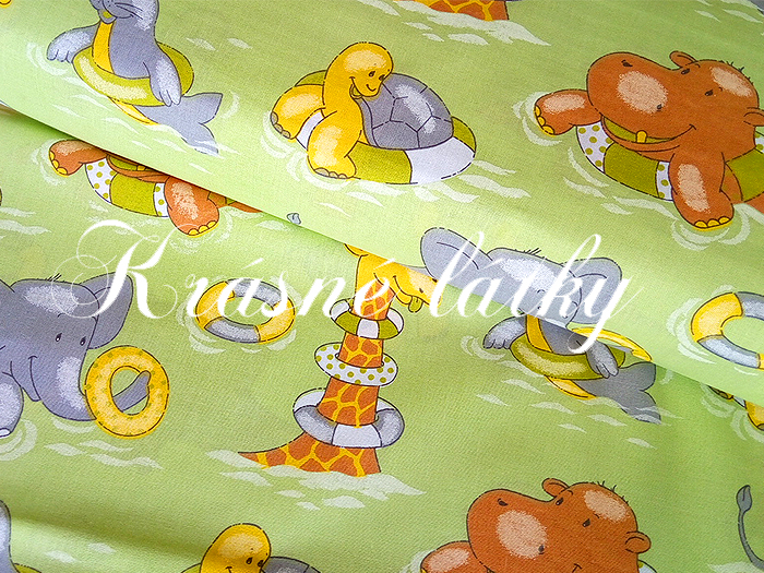 Hroch, lachtan, žirafa, slon, bavlněná dětská látka, metráž v šíři 140cm, plátno