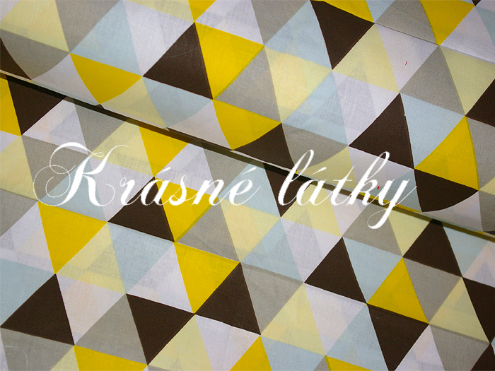 - Zlaté písky, Trojúhelniky geo žluto šedé, bavlněná látka v šíři 160cm, 120g/m2