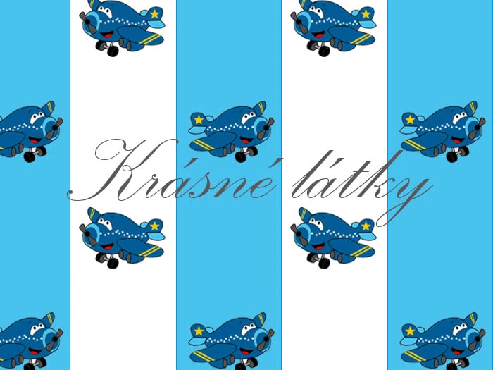 Krásné vysoce kvalitní bavlněné plátno v prémium kvalitě s modrými letadélky. Látku lze použít do kombinace s dalšími látkami ze stejné kolekce. Veselá látka do dětského pokojíčku nebo na různé dekorace. Látka je pevná, ale splývavá. Látka má hebký saténový povrch.