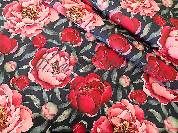 - Červené květy pivoněk - 100% bavlna, š. 160 cm, 150 g/m2, látky metráž, dětské látky
