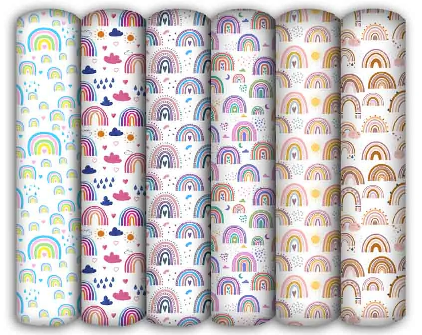 Tato látka je vaším novým partnerem pro všechny kreativní projekty – ať už šijete dětská hnízdečka, zavinovačky, letní šaty, povlečení nebo další bytový textil. Díky svému roztomilému motivu kreslené duhy dodáte každému projektu jedinečný, hravý vzhled, který nadchne děti i dospělé.