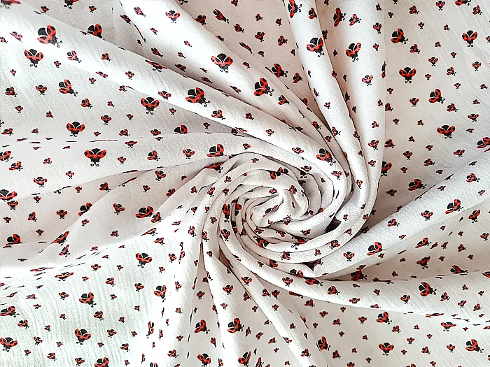Představujeme vám revoluční látku, která změní každý váš kreativní projekt v mistrovské dílo – Mušelín Beruška, dětská bavlna. Tato unikátní mušelínová látka s jemným a hravým motivem berušek je přesně tím, co potřebujete pro své letní šaty, trička, nebo tuniky. Nechte se unést neodolatelnou měkkostí a lehkostí této látky, která je navržena tak, aby poskytovala maximální komfort během horkých letních dnů. Měkkoučká mušelínová látka s drobnými beruškami na letní šatičky, tričko nebo tuniku. Látka je velmi příjemná do horkých letních dnů. Z látky můžete kromě oděvů ušít i povlečení, baldachýn, nebo soupravu do dětské postýlky.