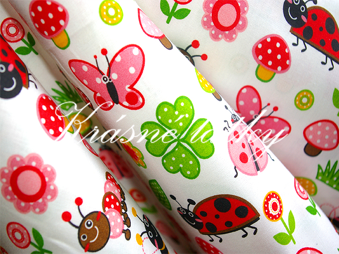 Použití: na dětské povlečení do malé i velké postýlky, kapsáře, závěsy, polštářky, zástěrky a další